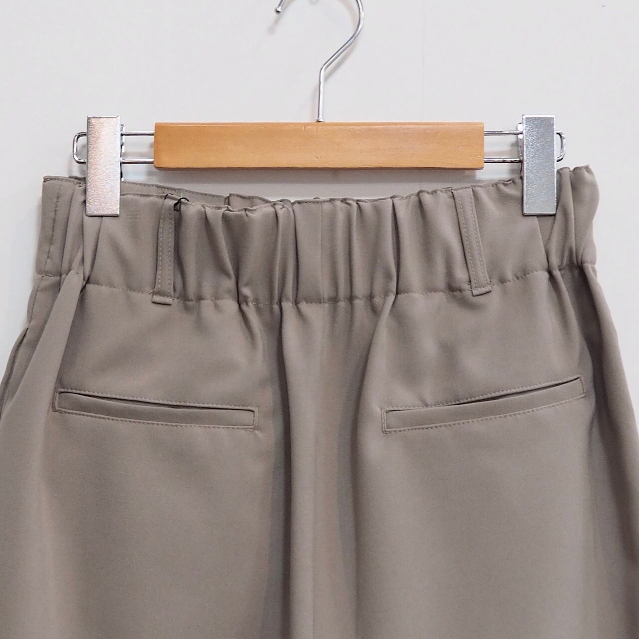 ウエストはギャザーがたっぷり入っています。短すぎない着丈なのでチャレンジしやすい長さです。