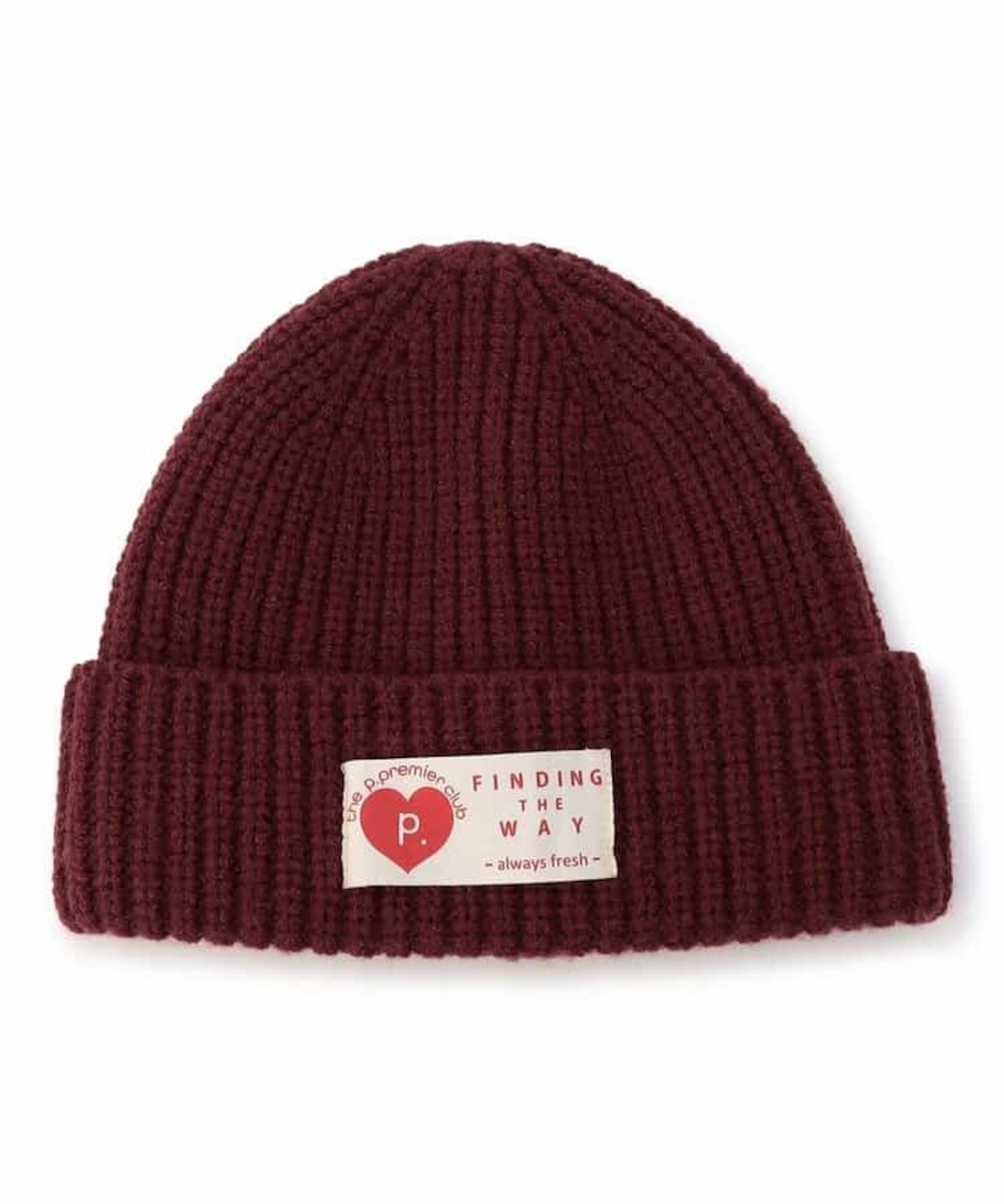 フロントの大きめのブランドタグがついたビーニー。