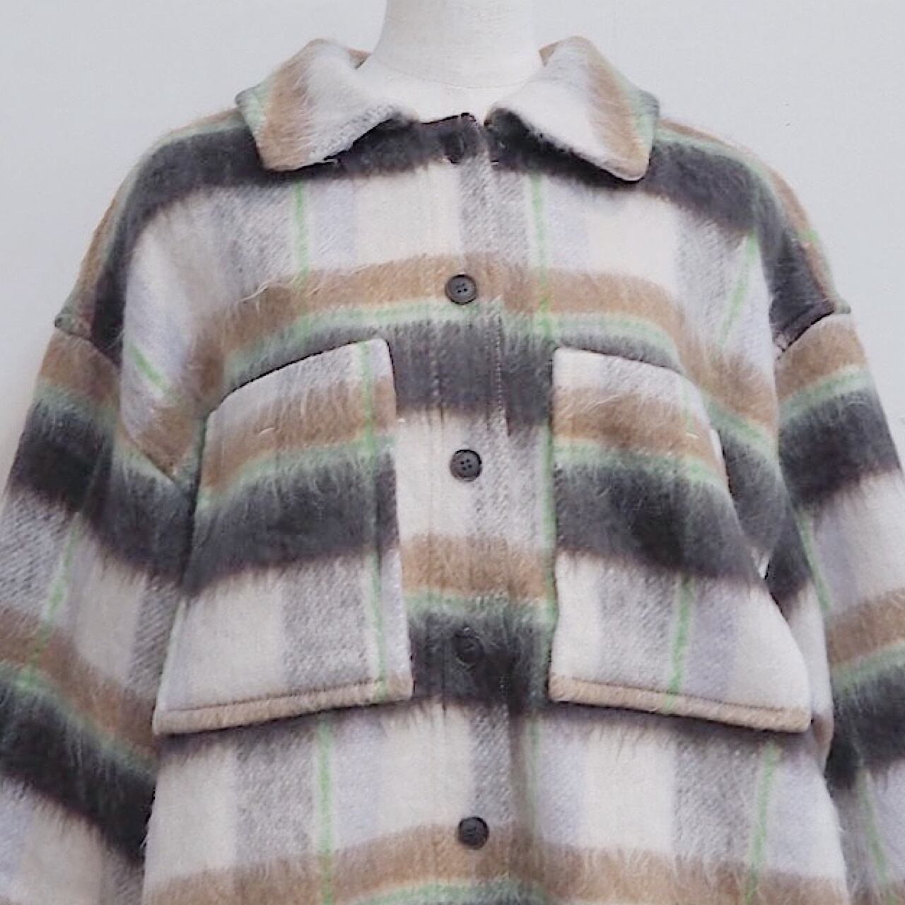 ウールモッサ杢ヘリンボーン・シャギーチェック シャツブルゾン