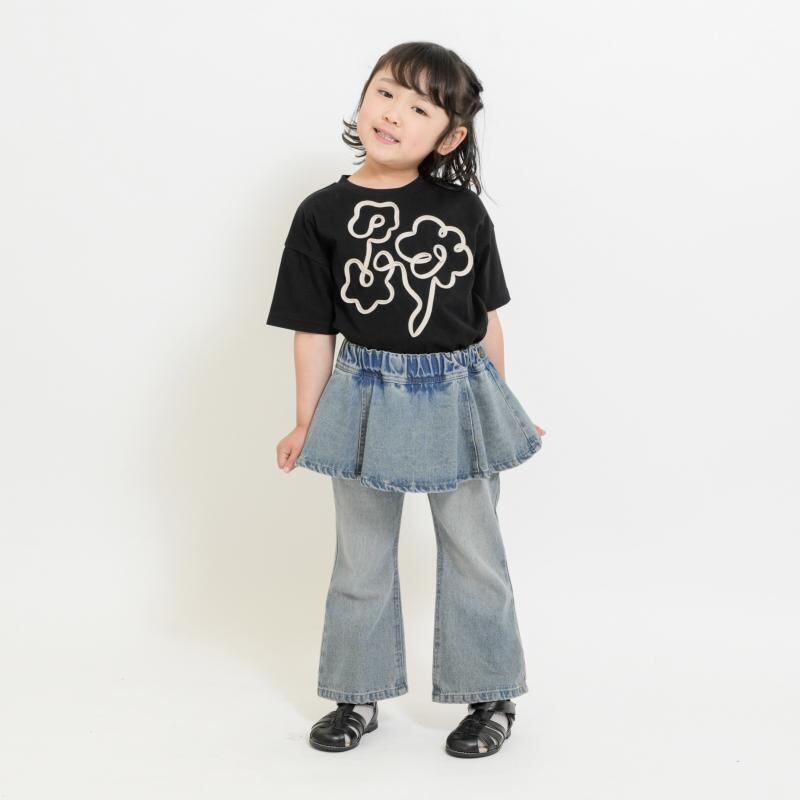 フロント部分にコードのような花の刺繍が施されたオーバーサイズのTシャツ。