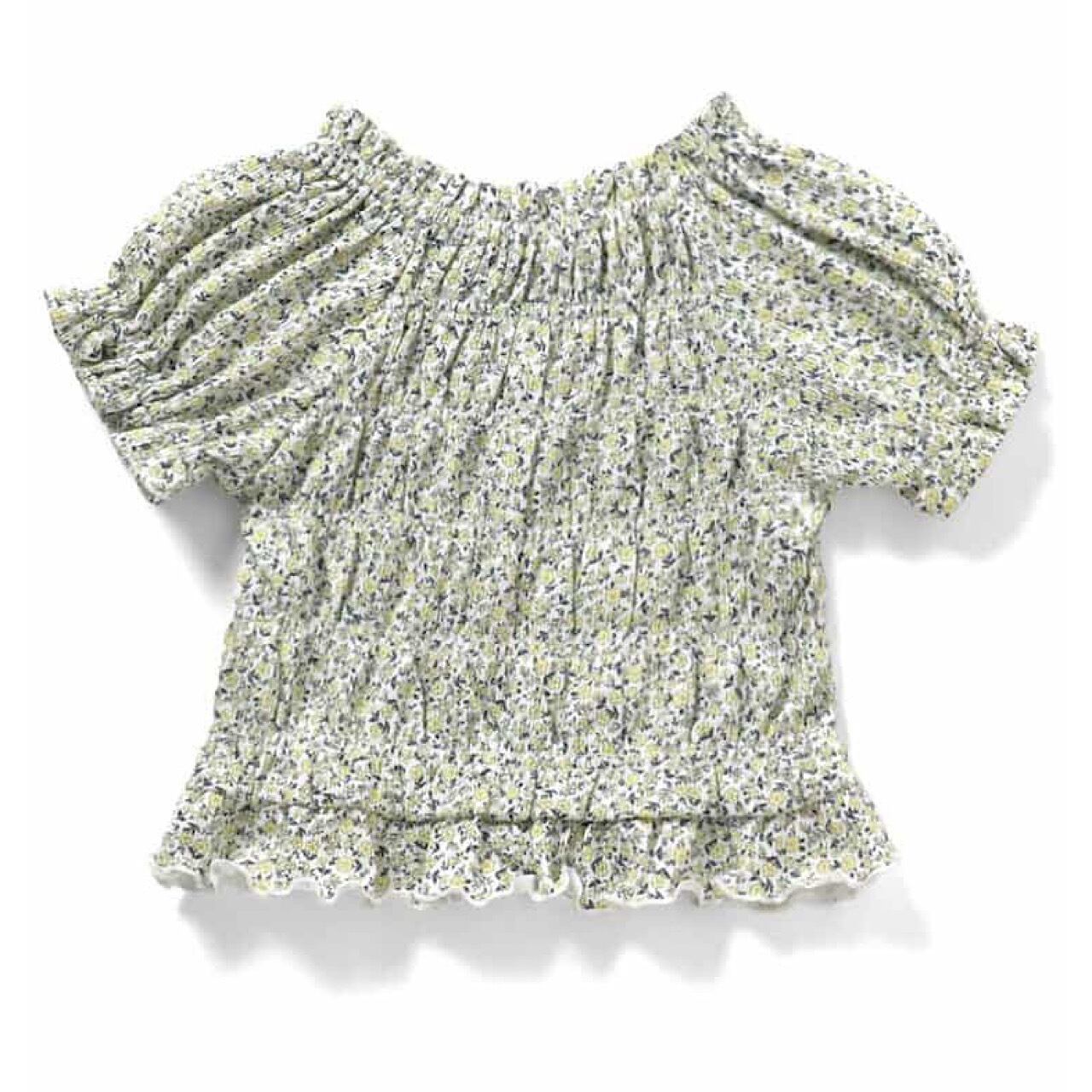 女の子らしい印象を与えつつ、シンプルなボトムスと合わせるだけで完結してくれます。