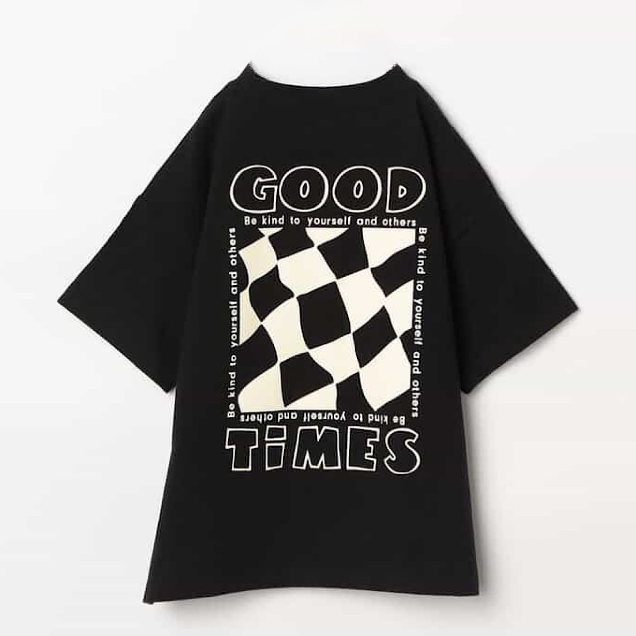 クールな印象のシンプルなモノトーンだからこそ、胸元と背中に大胆なグラフィックを効かせ、