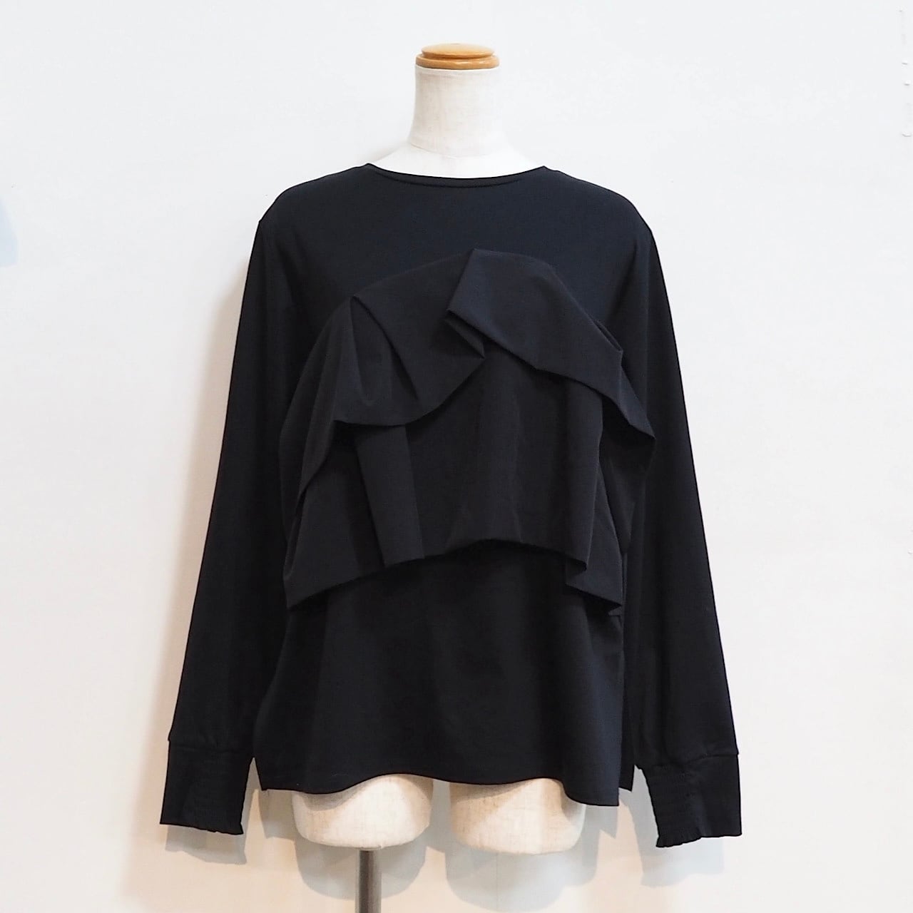 フロントに大胆に施したフリルがポイントのロンT。