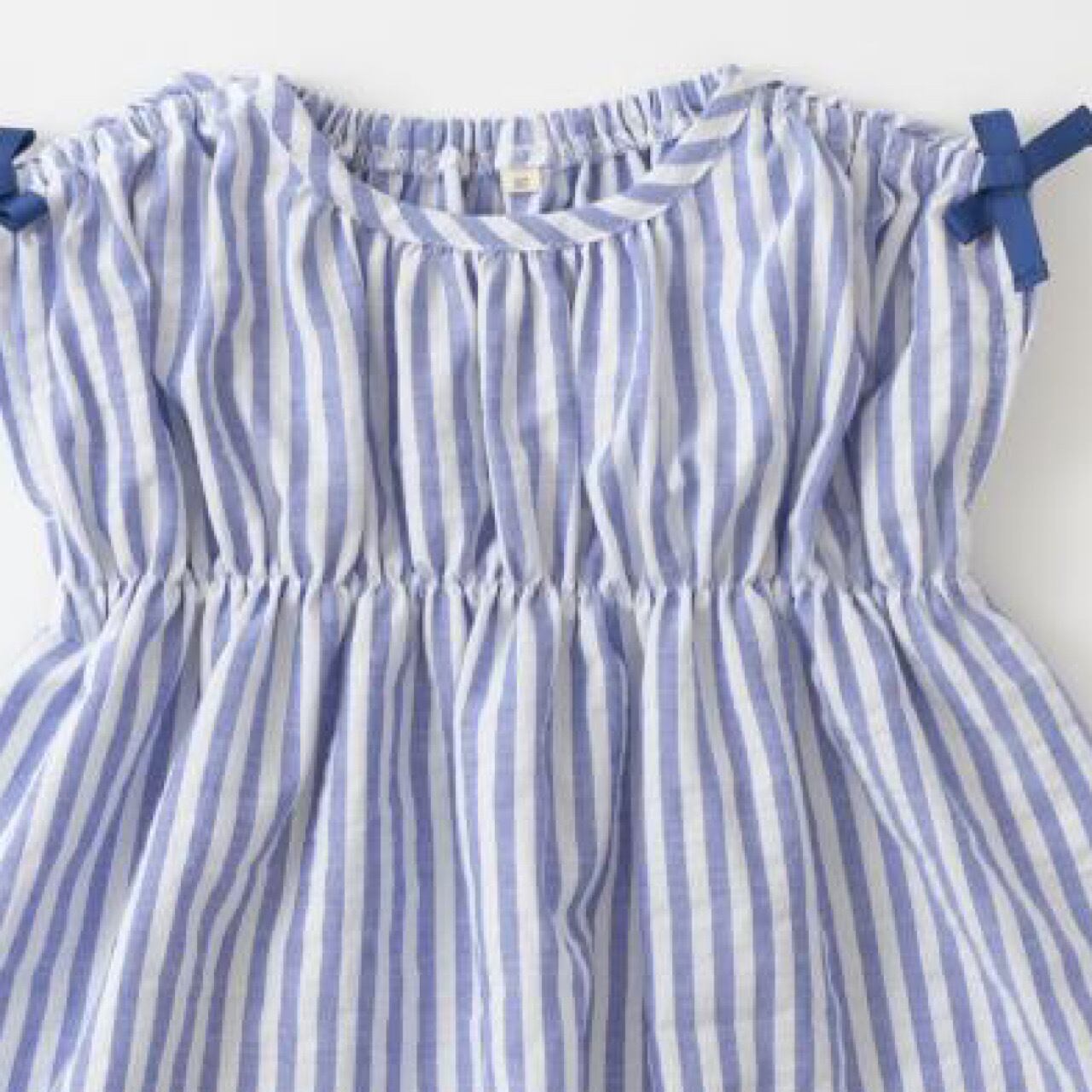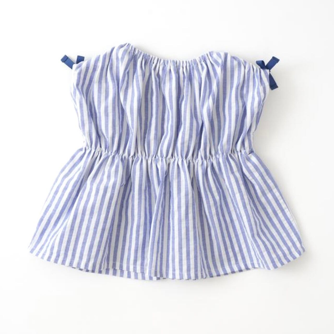 両サイドの肩部分にリボンが施されたギャザーブラウス。