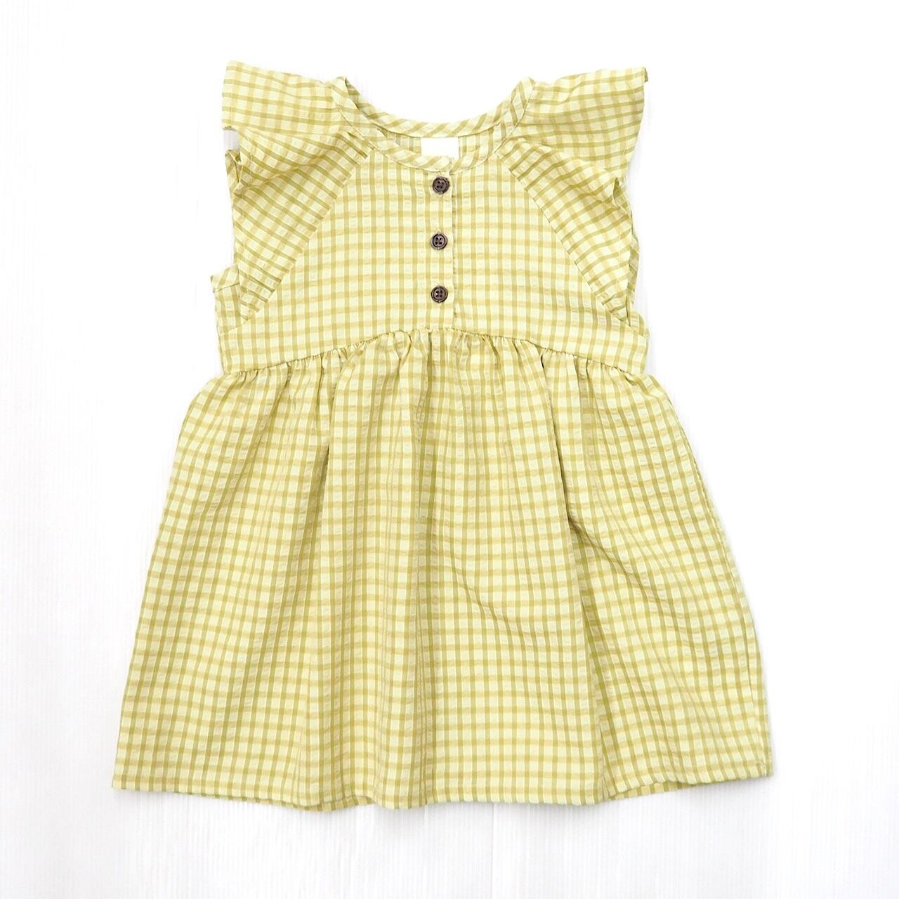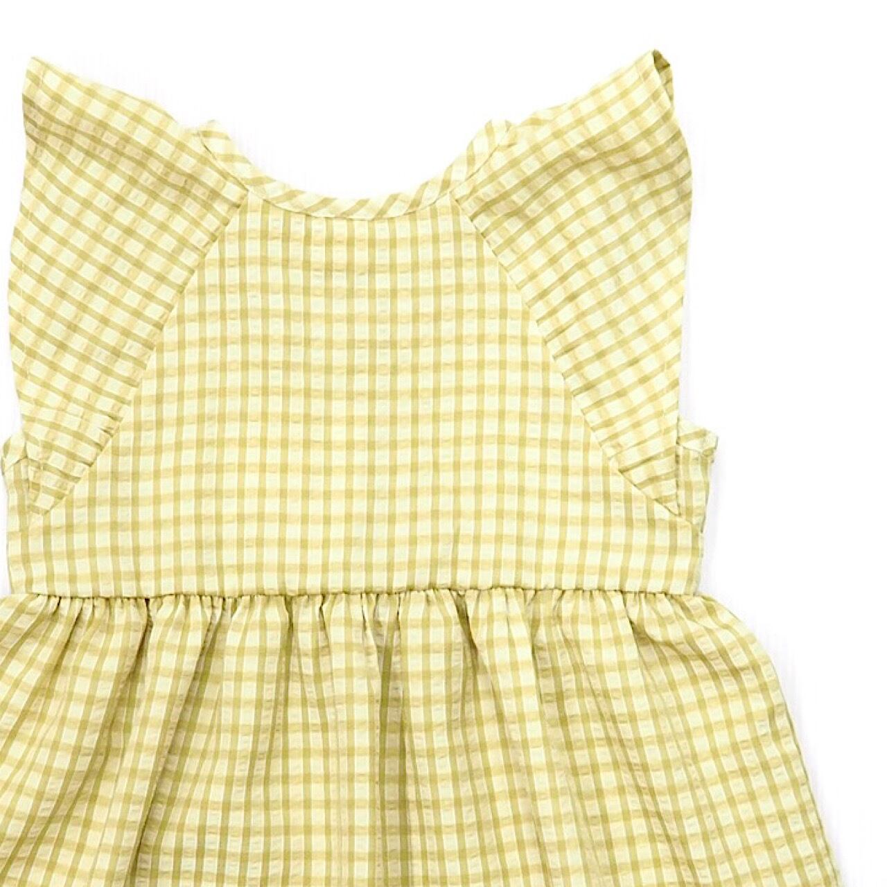 ノースリーブでギンガムチェック柄のワンピース。
