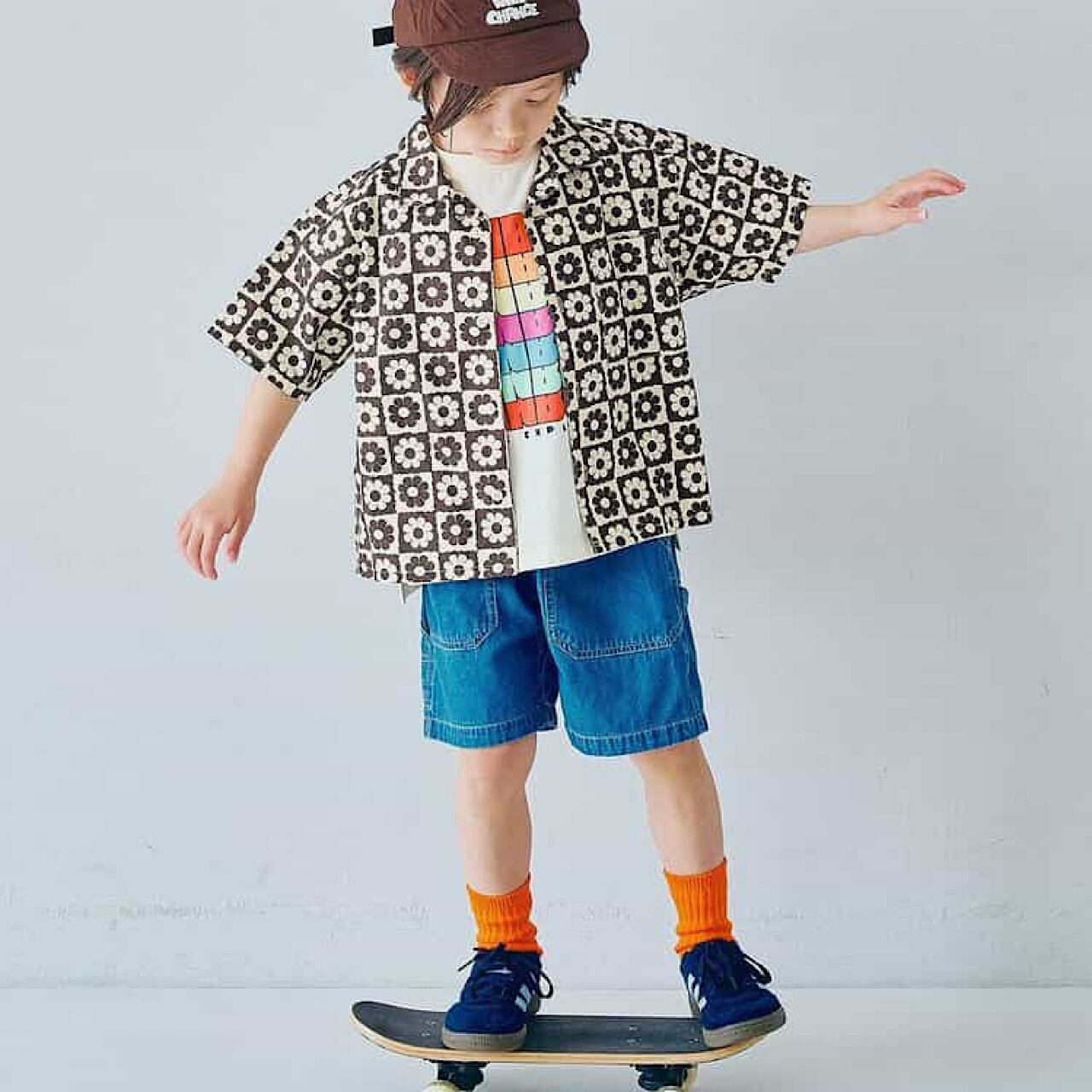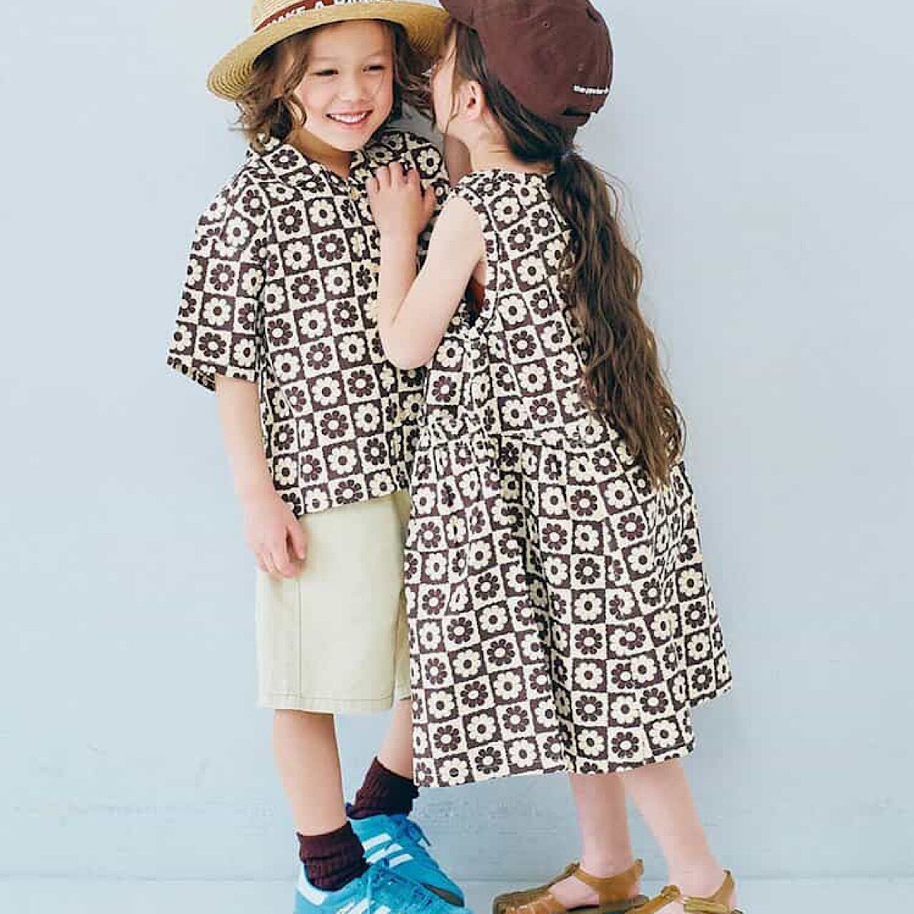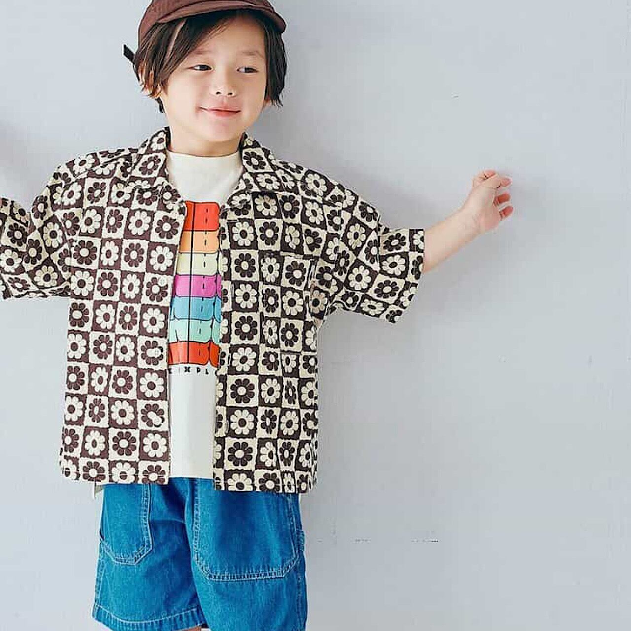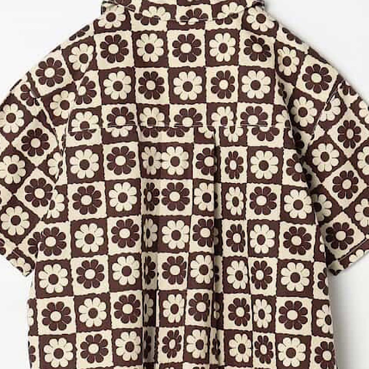 半袖の総柄シャツ。ゆったりしたシルエットで風通りが良く、真夏でも快適に過ごせます。